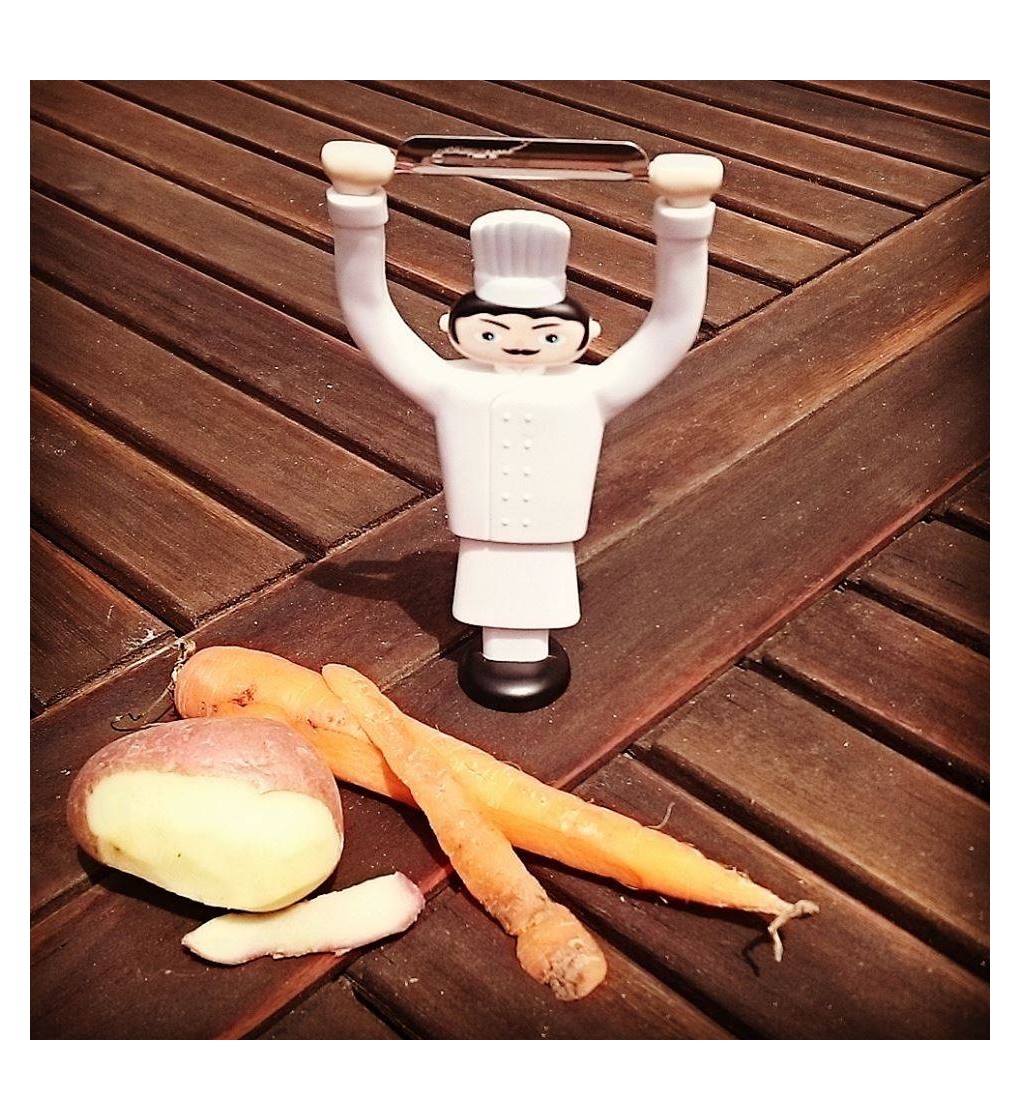 Il faut la discipline d’un chef pour éplucher les légumes : épluchures fines, travail rapide. Une excellente recrue pour votre cuisine.