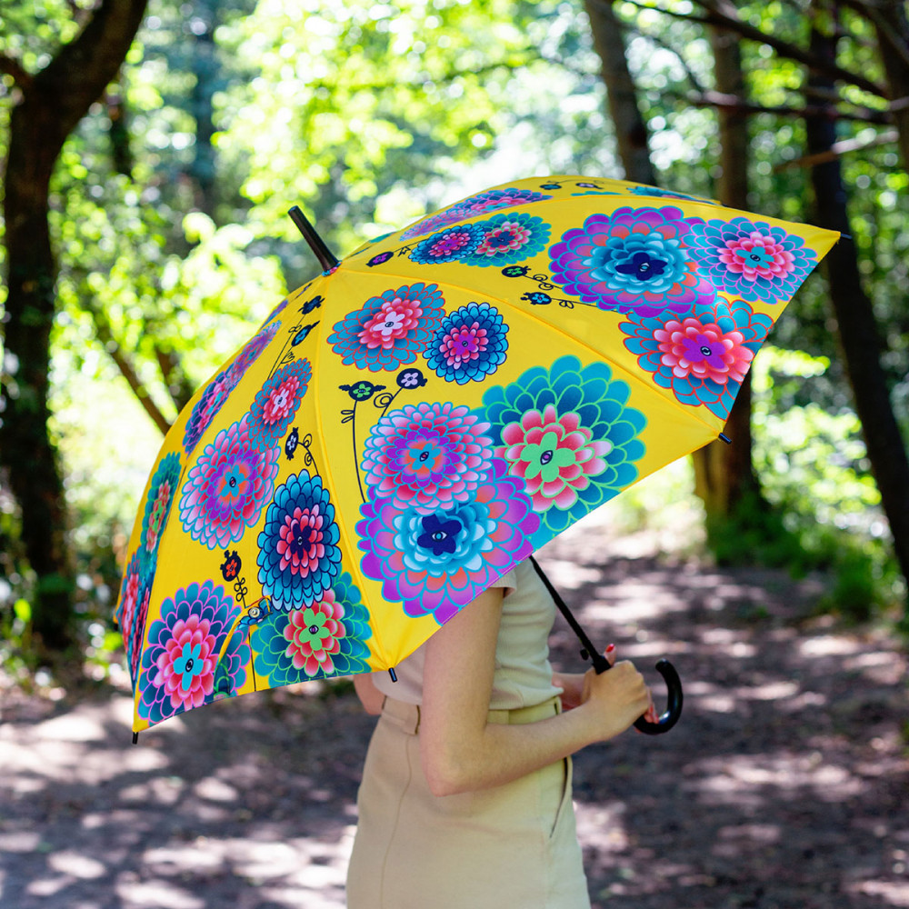 Temps pluvieux, parapluie heureux ! Et vous aussi ! Soyez le rainbeau de la météo en apportant une touche colorée et fleurie à ce ciel gris. Ses dimensions vous permettront de vous protéger seul ou à deux pour une sortie qui ne tombera pas à l’eau. Facile d’utilisation, son ouverture automatique vous protégera en un battement de cil.
