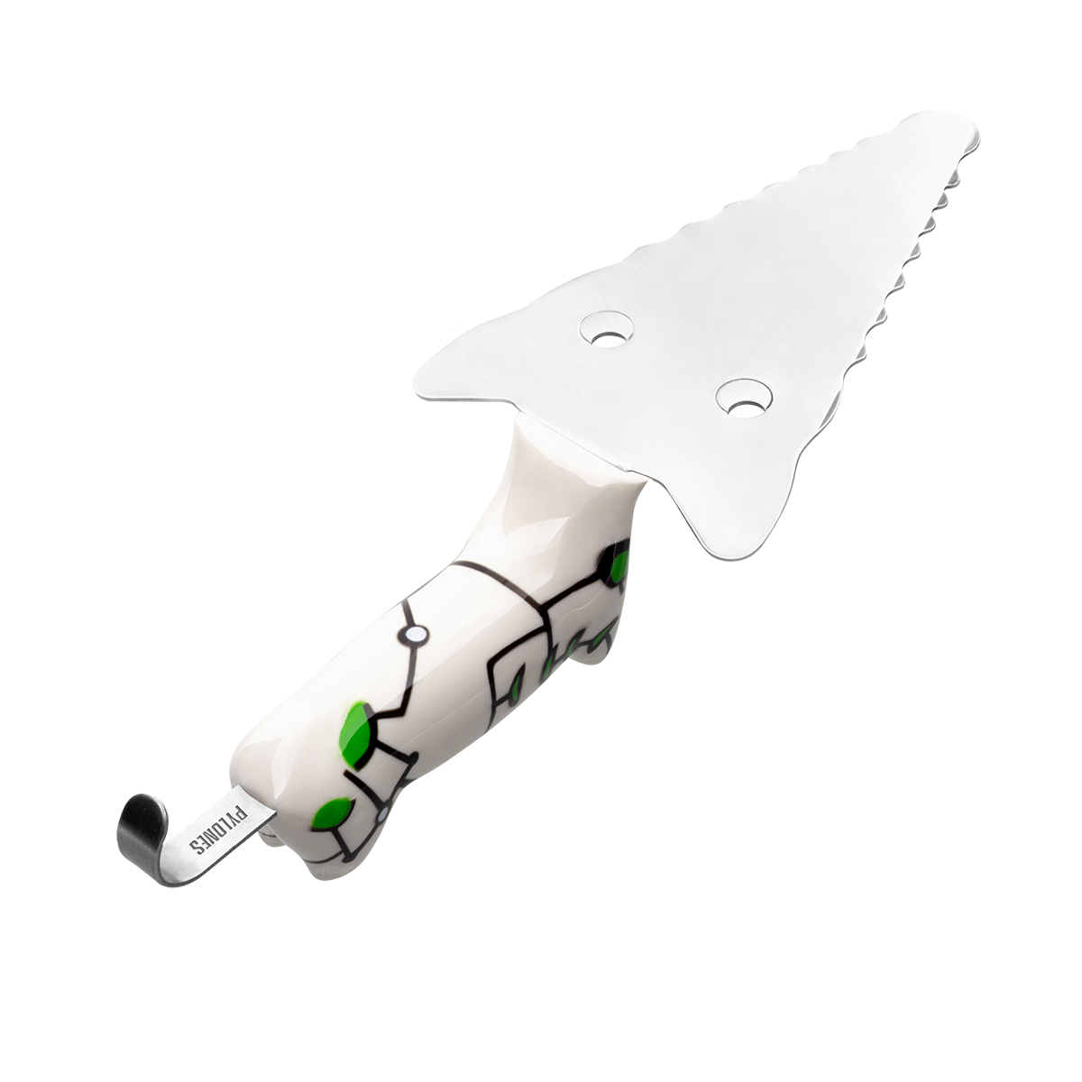 Détails : La queue en forme de crochet permet de suspendre le Filou. Les dents sur le côté permettent de couper le gâteau.