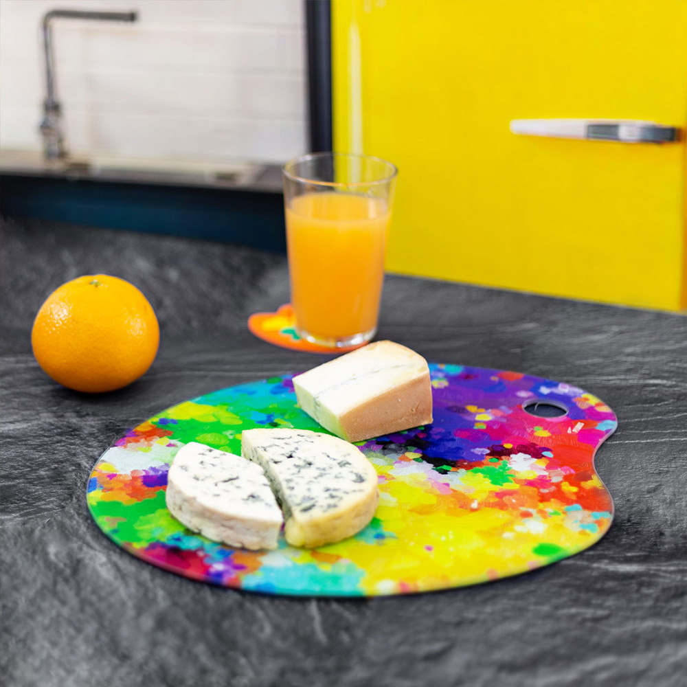 Cette palette peinture en verre en guise de plateau à fromages est très jolie. Je l'ai également assortie avec le couteau à fromages. Enchantée de ma commande !
