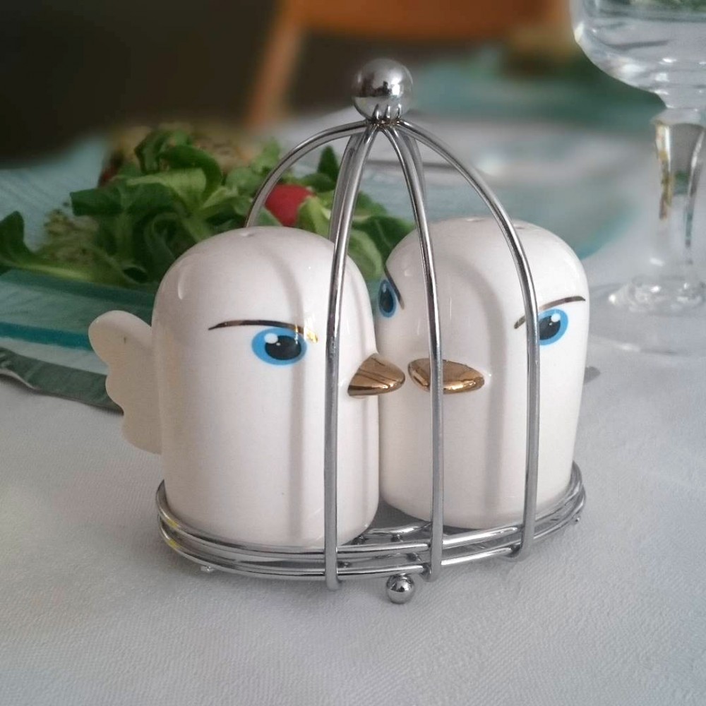Adapté au sel fin et au poivre moulu, ce couple d'oiseaux épicera tous vos repas.