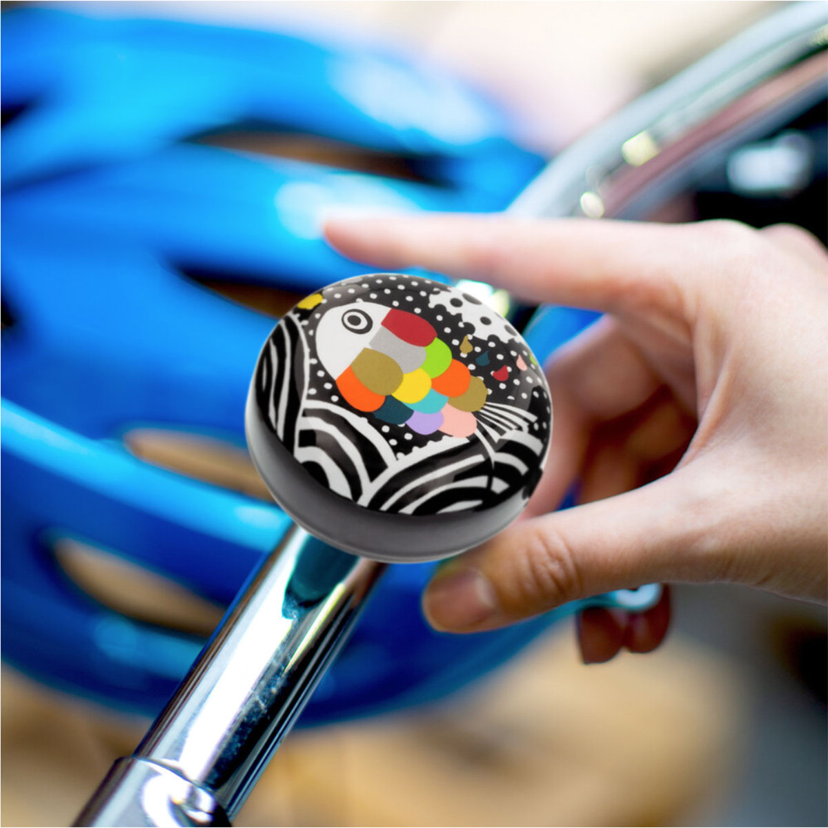 Sur le guidon de ma bicyclette, de la poussette et pourquoi pas sur le caddie ? J’impose ma présence dans la jungle urbaine. Je ne m’en laisse pas conter et sais prévenir tous les dangers. Je me sauve, je vais encore me faire sonner les cloches si j’arrive en retard !