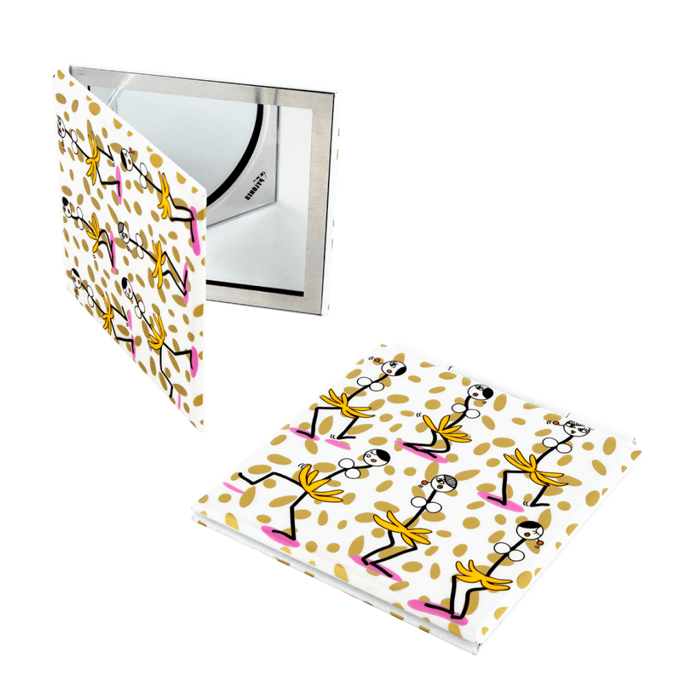 Je suis un double miroir tout mimi (dont un grossissant), l’ami des jolis minois. Fin, délicat, peu encombrant, je suis le contraire d’une armoire à glace.