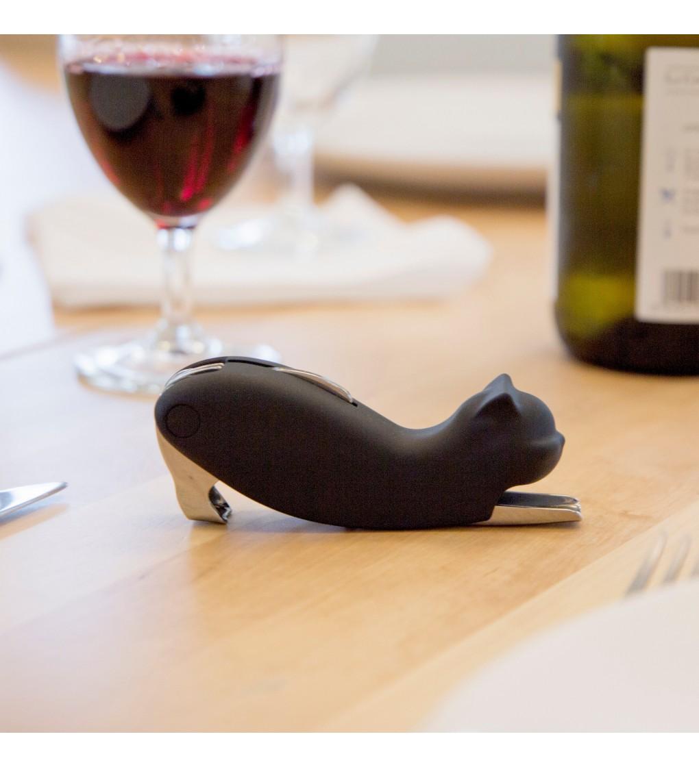 Non, vous ne vous trompez pas ! Ce chat se transforme en tire-bouchon ! Petit et facile à utiliser, ouvre-bouteille et décapsuleur, il sera l'allié des apéros réussis !