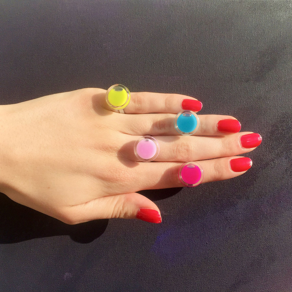 Made in France ! Anelli inventati e lavorati dal nostro laboratorio di vetro soffiato, vero cuore pulsante della fabbrica Pylones. Una collezione iconica e famosa che farebbe impallidire di gelosia un arcobaleno!