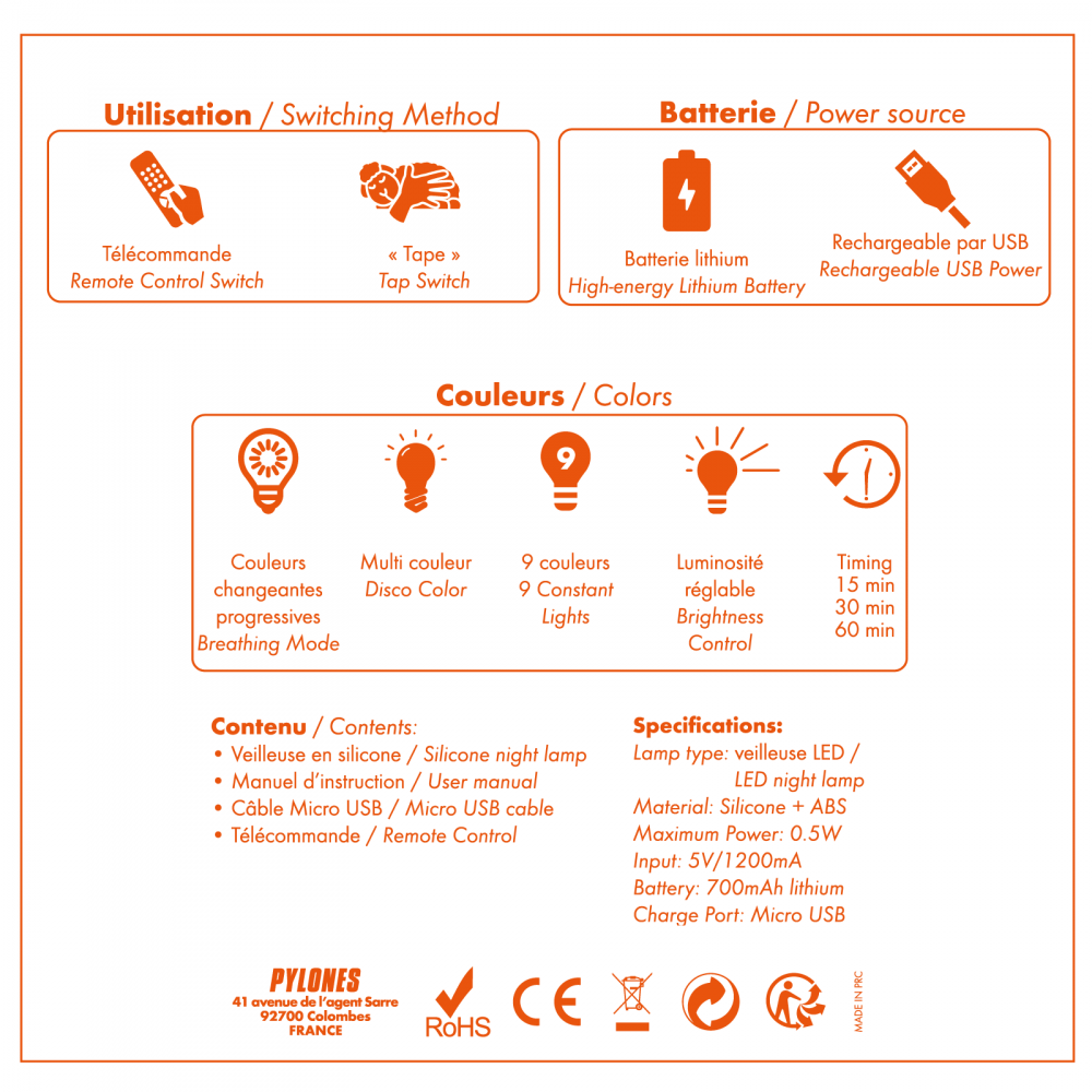 Contare le pecore prima di addormentarsi ha finalmente un senso! La sua luce calma i più piccoli e insegue le paure notturne. Una pacca sulla spalla, e cambia colore!