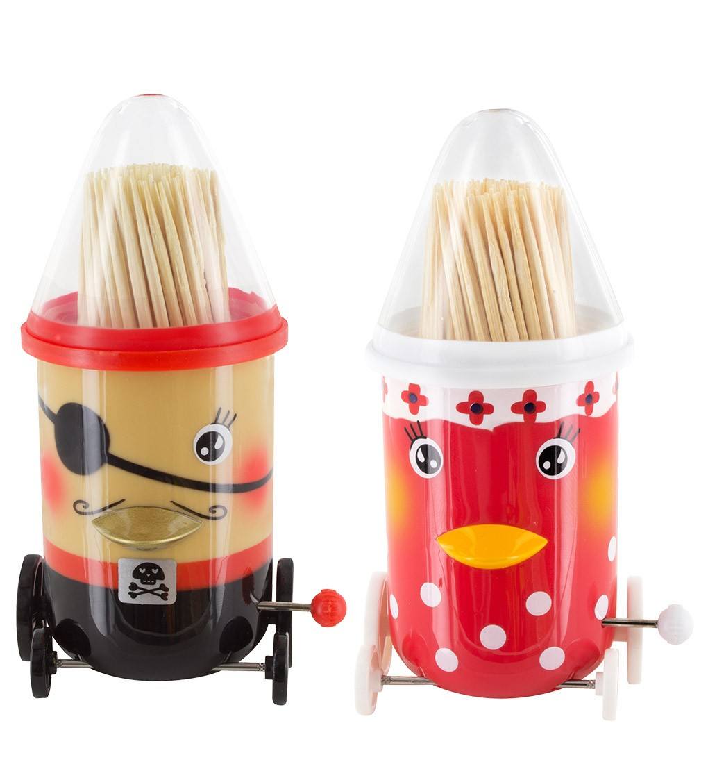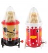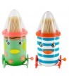 Dettagli : Dévisser l'embout supérieur puis insérer des cure-dents (non fournis). L'ouverture sur le couvercle permet de récupérer les cure-dents en retournant l'oiseau. Tourner la manivelle dans le sens des aiguilles d'une montre pour faire rouler les Rolling Pics.