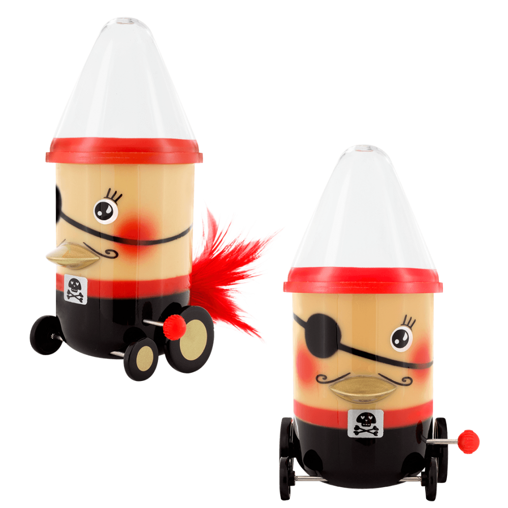 Dettagli : Dévisser l'embout supérieur puis insérer des cure-dents (non fournis). L'ouverture sur le couvercle permet de récupérer les cure-dents en retournant l'oiseau. Tourner la manivelle dans le sens des aiguilles d'une montre pour faire rouler les Rolling Pics.