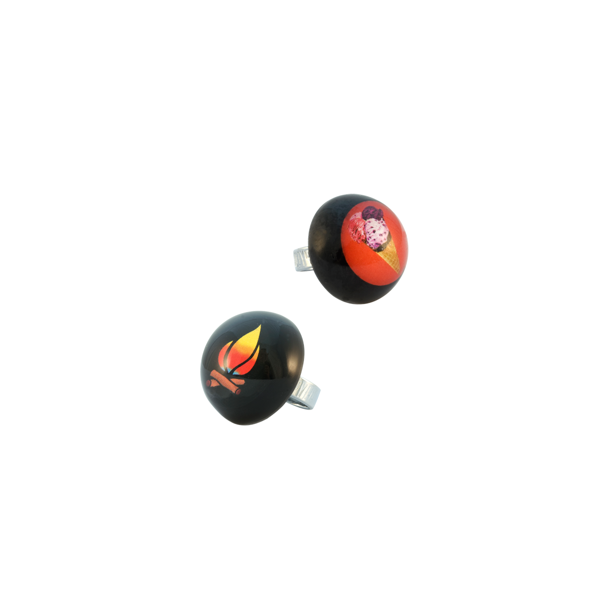 Primi anni '90: una collezione di gioielli con perline in resina con inclusioni di immagini ritagliate da riviste. Gli accostamenti di decine di immagini diverse e venti colori di resina rendono ogni gioiello unico!