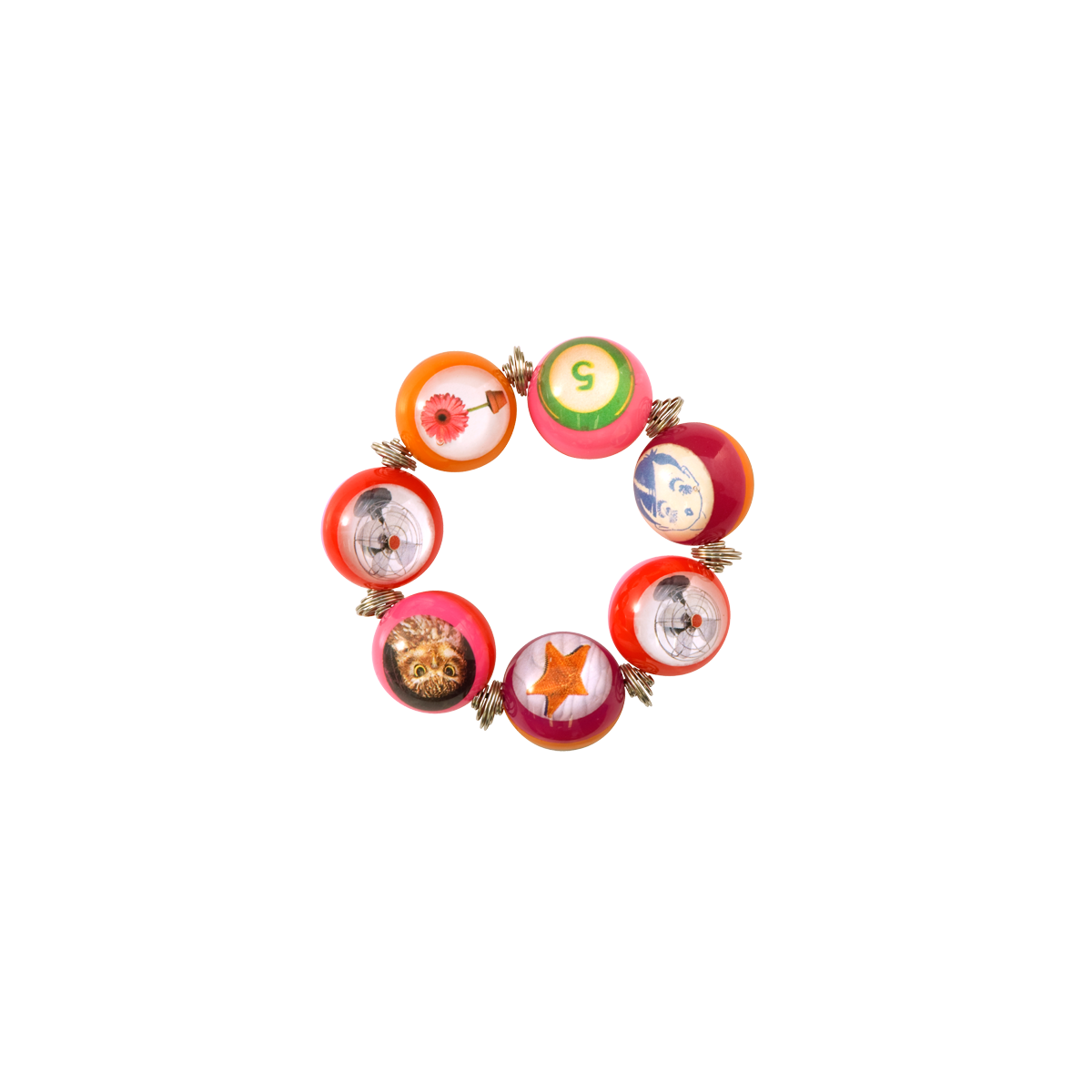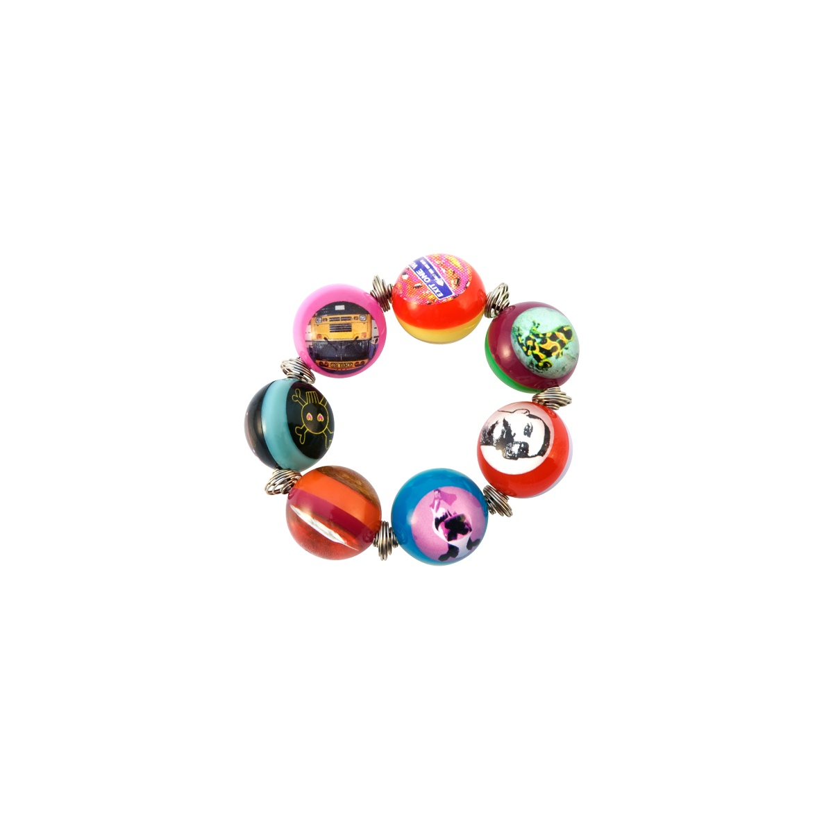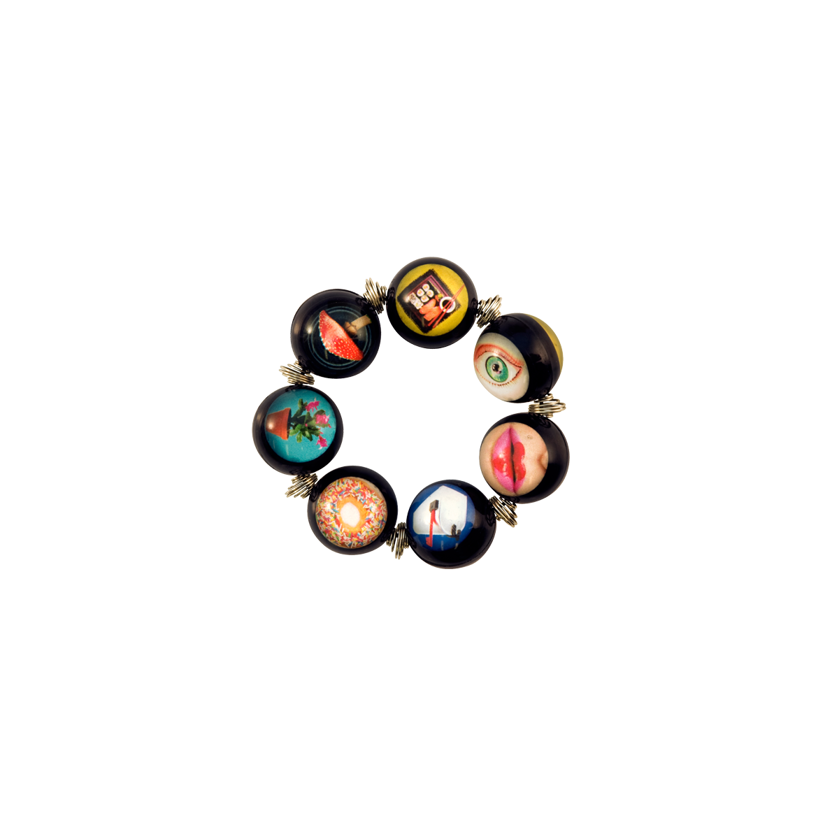 Primi anni '90: una collezione di gioielli con perline in resina con inclusioni di immagini ritagliate da riviste.