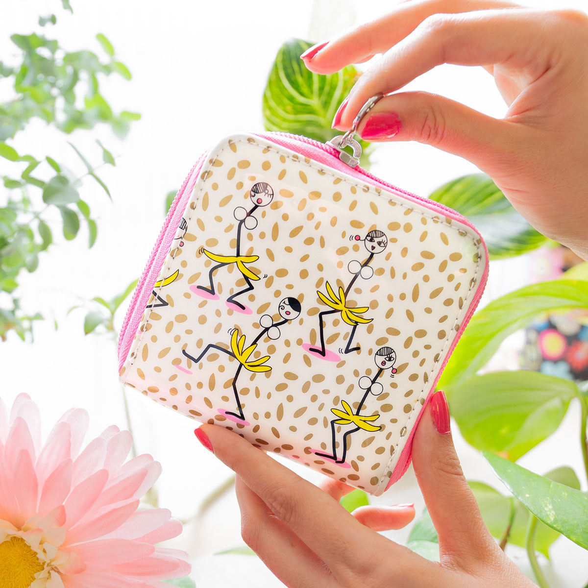 Non ho niente a che fare con un portafoglio ministeriale, preferisco occuparmi di banconote, tessere e scontrini. Il mio piccolo formato è perfetto per i viaggi, ma non mi impedisce di essere ben fornito con 8 scomparti per carte di credito e 1 taschina interna a cerniera.