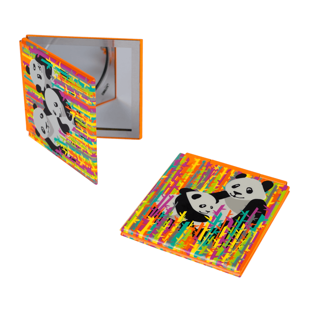 Pratico specchio doppio (con un lato ingrandente) non sono solo bello, so anche riflettere. Sottile, delicato, poco ingombrante, sono il compagno ideale da infilare in borsa per ritocchi dell'ultimo minuto.