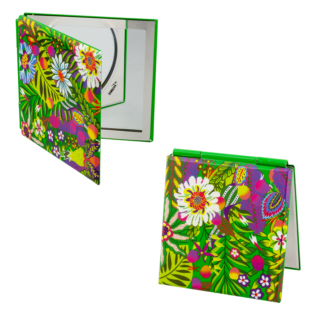 Pratico specchio doppio (con un lato ingrandente) non sono solo bello, so anche riflettere. Sottile, delicato, poco ingombrante, sono il compagno ideale da infilare in borsa per ritocchi dell'ultimo minuto.