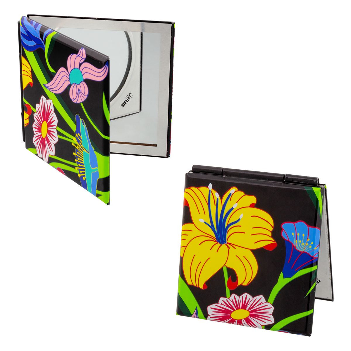Pratico specchio doppio (con un lato ingrandente) non sono solo bello, so anche riflettere. Sottile, delicato, poco ingombrante, sono il compagno ideale da infilare in borsa per ritocchi dell'ultimo minuto.