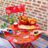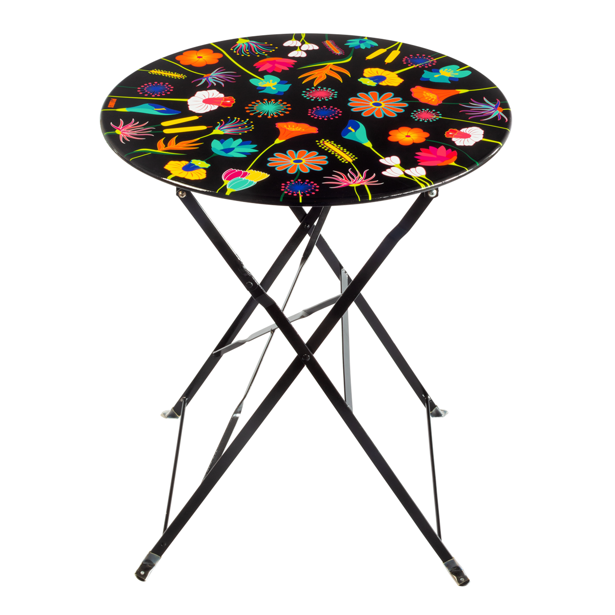 Cette petite table toute fleurie de coquelicots est très jolie, originale et assez légère, ce qui est parfait quand on n'a plus 30 ans. En plus on découvre qu'il y a une minuscule grenouille verte et un papillon vert et bleu. J'adore cette table.